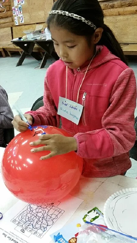 After two days, we called Allakaket. The conditions improved and it was okay to fly in. We flew out on Tuesday, set up for VBS with the same theme we had in Kobuk, and blew up more balloons. Longer time periods were scheduled each day for VBS since we had to double-up on the lessons.