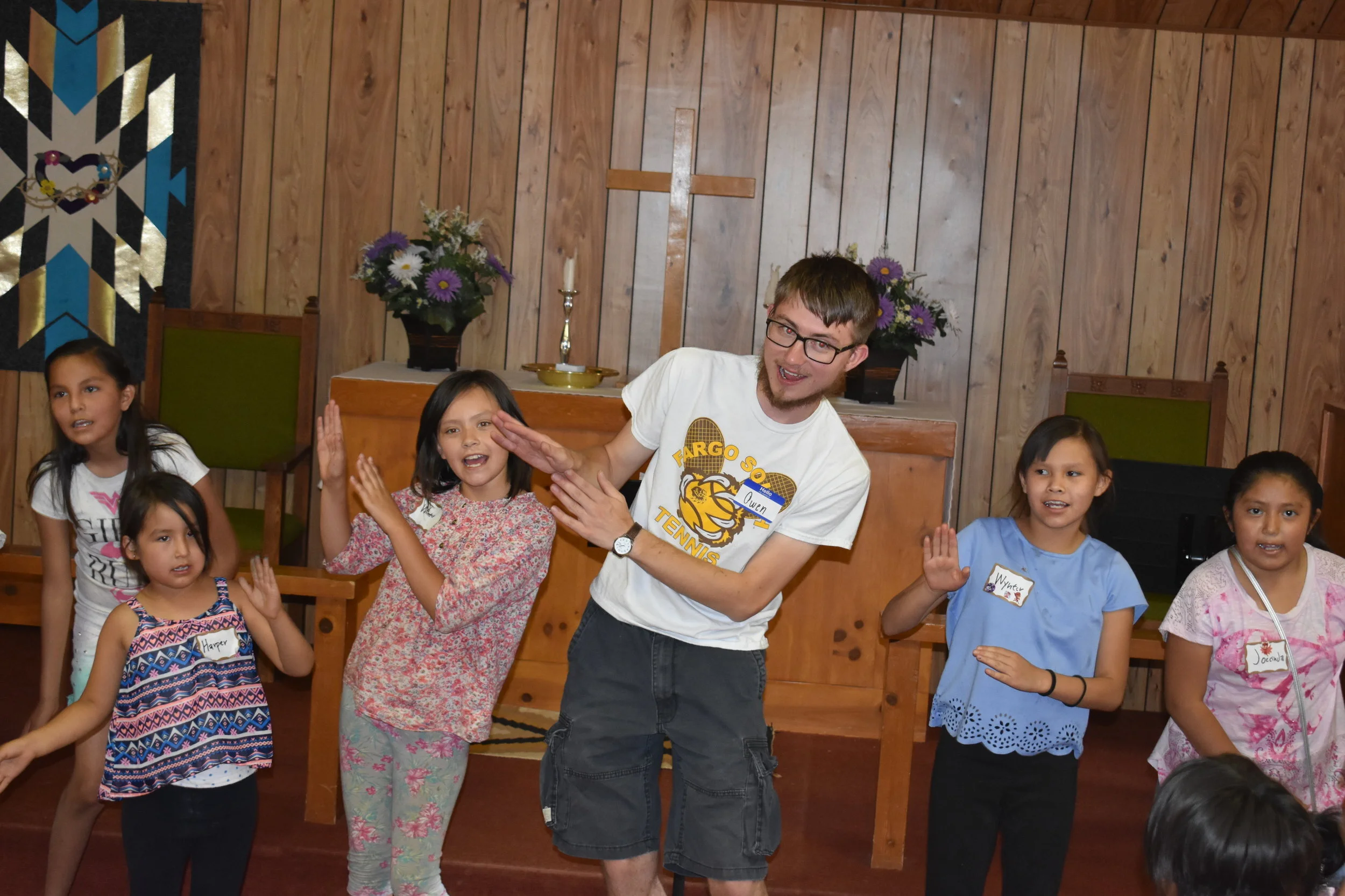 Summer greetings from Navajo. Above is pictured one of our intern, Owen Duncan, leading songs at our V.B.S. We had three main children’s outreach events in the month of July; V.B.S., Sports Camp, and Day Camp. There were 112 indivual children that attended these different events.