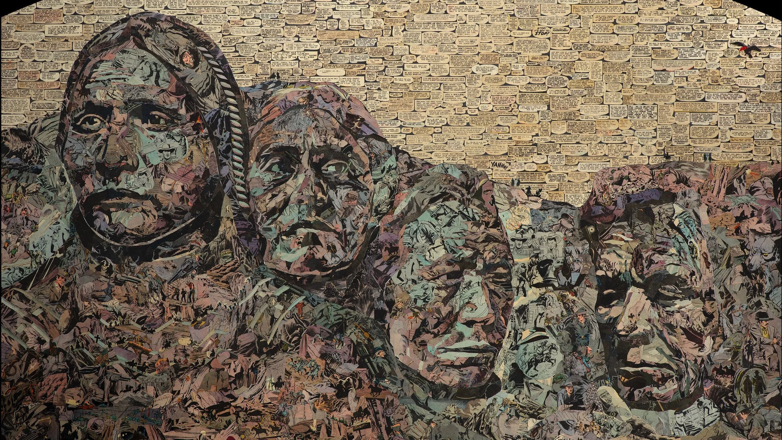 Ben Turnbull’s collage portraits of Native Americans chiefs, created from thousands of chopped-up vintage comics, confront the pop-culture myths surrounding the American frontier