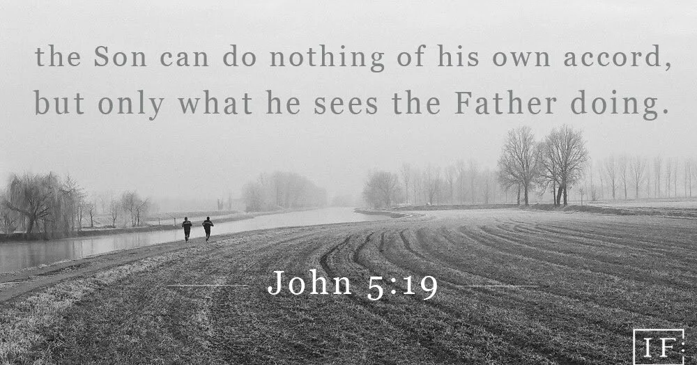 Jesus was God, calling God his own father and making himself equal to him (John 5:18), but He was also the obedient son of the Father. He said to those who wanted to kill him, "I tell you the truth, the Son can do nothing by himself; he can do only what he sees his Father doing, because whatever the Father does the Son also does." (v. 19)