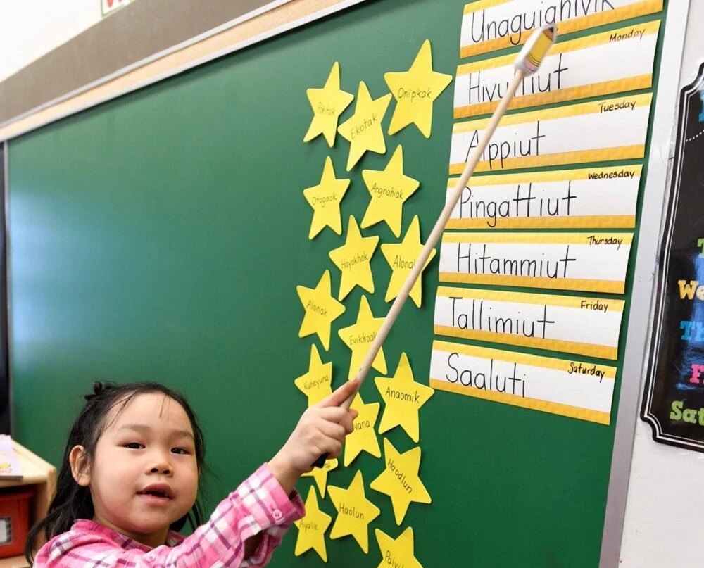 Here, a young Nunavut student learns the names of the week in Inuinnaqtun. (PHOTO COURTESY OF GN)
