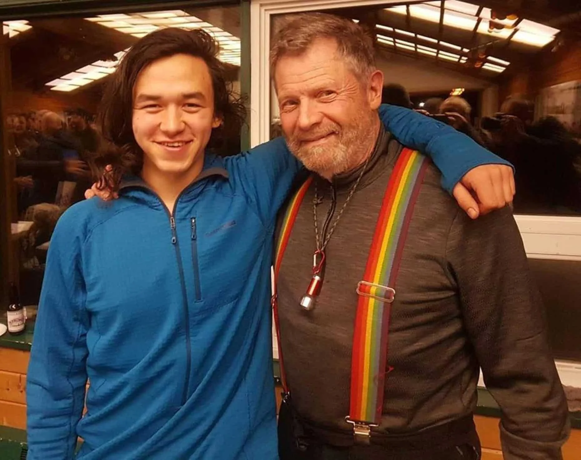 Martin Apayauq Reitan, 21, and Jim Lanier, 78, at a Yukon Quest pre-race mushers meeting in Whitehorse. (Courtesy of Ketil Reitan)