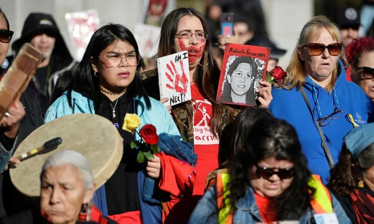 Women take part in an annual event honoring the lives of missing and murdered Indigenous women. Photograph: Jennifer Gauthier/Reuters