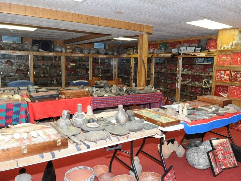 Artifacts on display at Don Miller's farm in 2014. For more than seven decades, Miller unearthed cultural artifacts from North America, South America, Asia, the Caribbean, and in Indo-Pacific regions such as Papua New Guinea. (FBI)