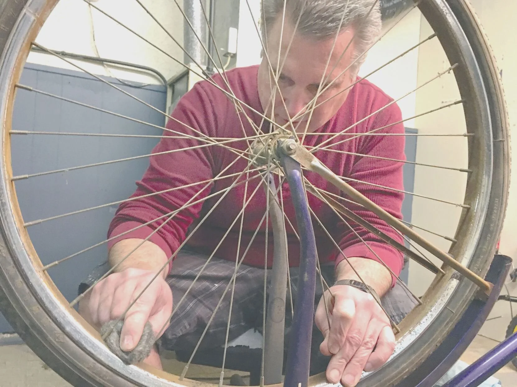 While using a steel wool pad to rub off a coat of rust on a bicycle frame, Sanders talked about his odyssey. This voyage would lead him to get refurbished bikes to kids at Pine Ridge Indian Reservation in South Dakota.