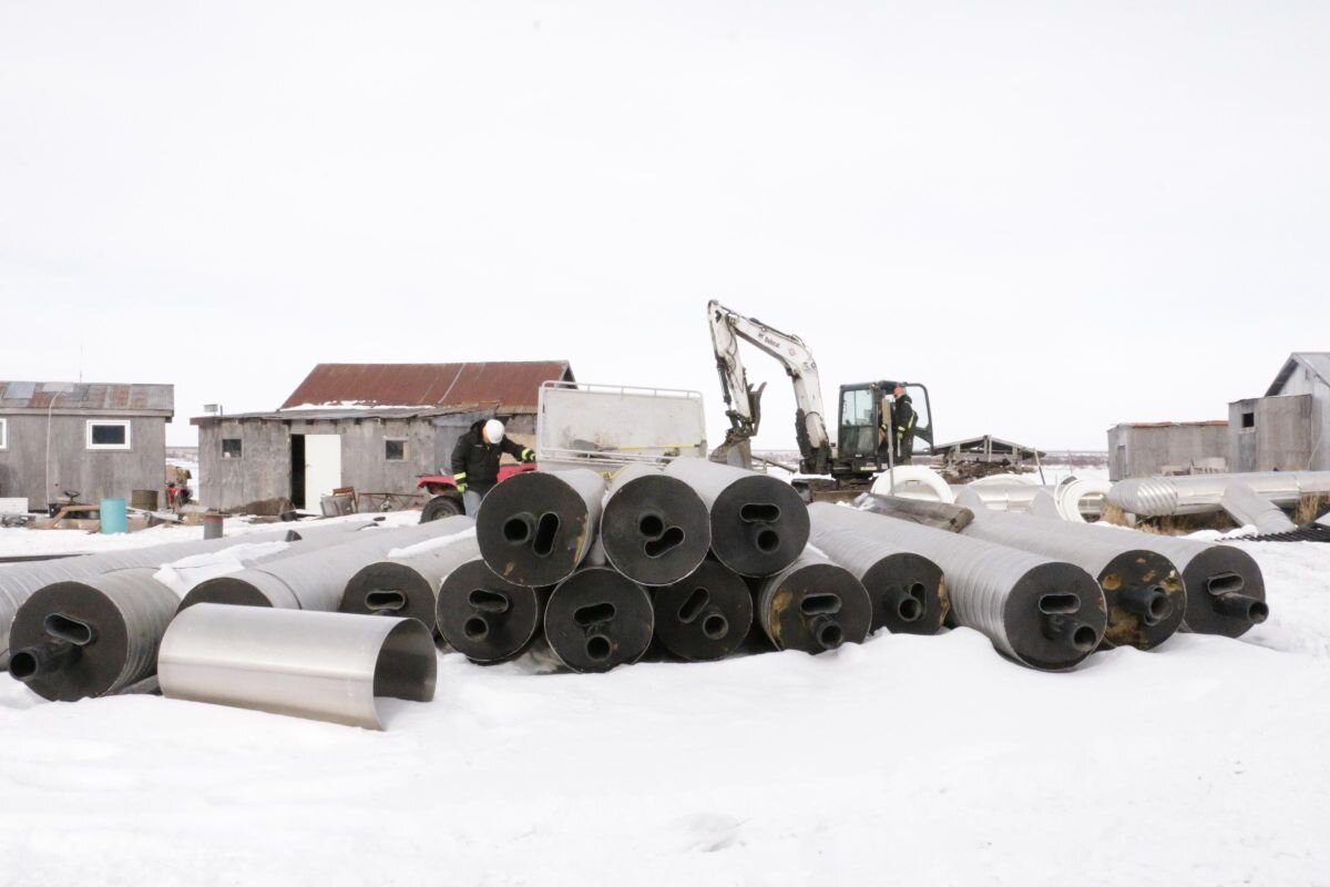 ANTHC crews prepare to bury water lines in Eek on February 20, 2019. (Anna Rose MacArthur / KYUK)