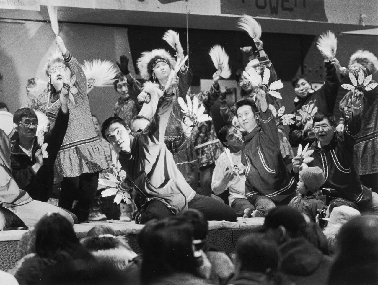 Yup'ik dancers at a dance festival at Toksook Bay in 1996. JAMES BARKER