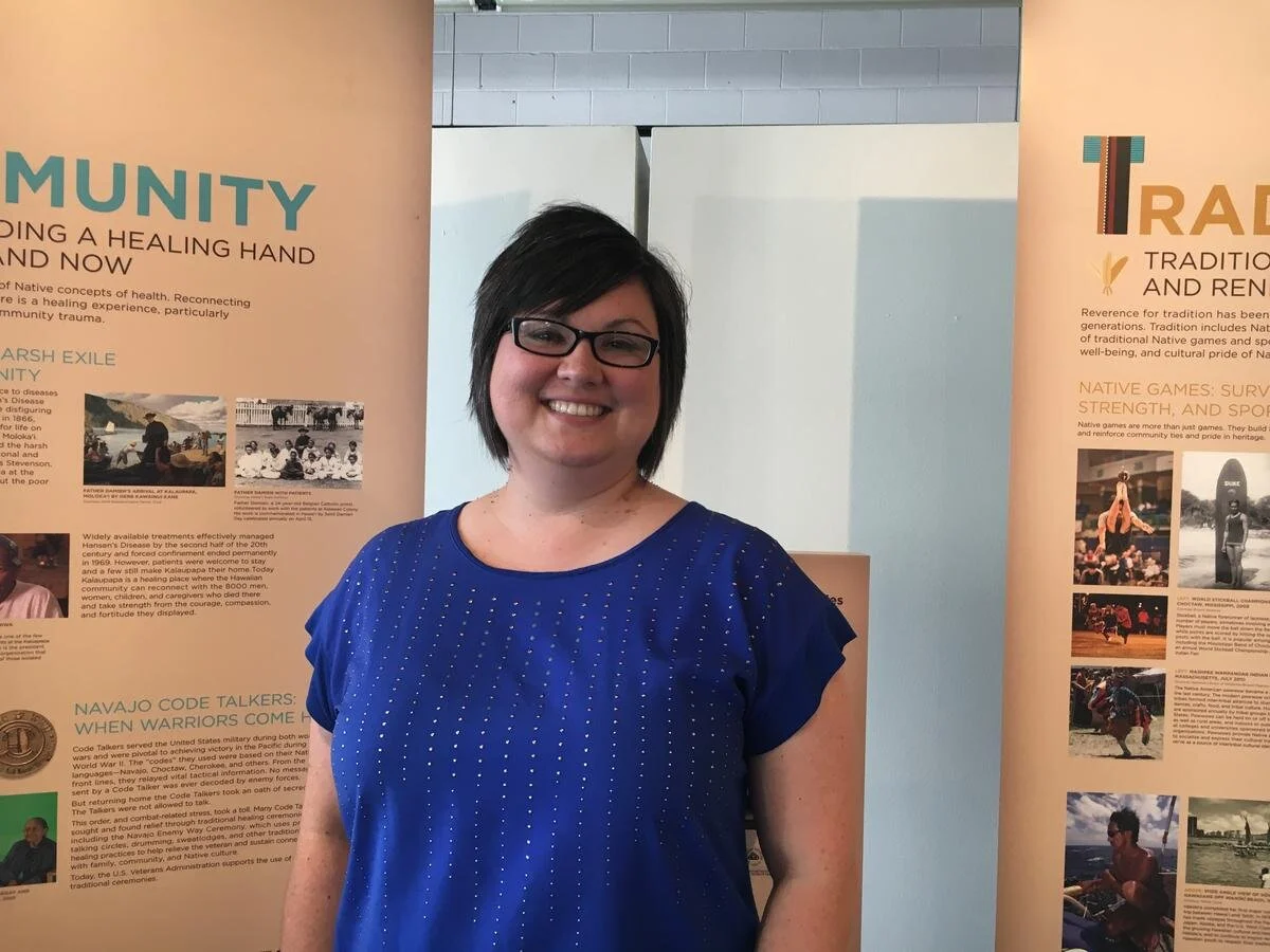 The SNRC’s current exhibit, Native Voices, comes from the National Library of Medicine and National Institutes of Health. It explores contemporary Native American relationships with health and wellness, through text, art, and multimedia works. Fehr’s favorite display table includes the SNRC’s cookbooks from various tribes.