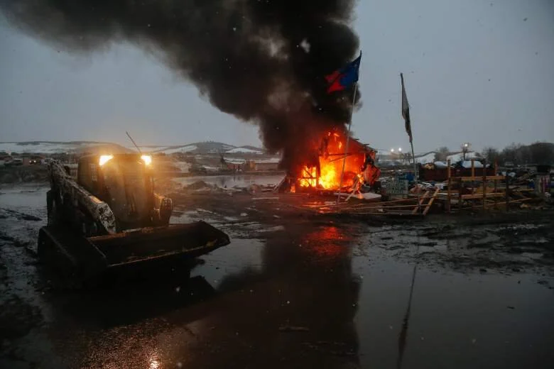 With just hours to go before they are reportedly due to be evacuated, some protesters outside the Standing Rock Sioux reservation began burning their camp, which has been home to thousands of people during the months-long standoff over the Dakota Access pipeline, to the ground.